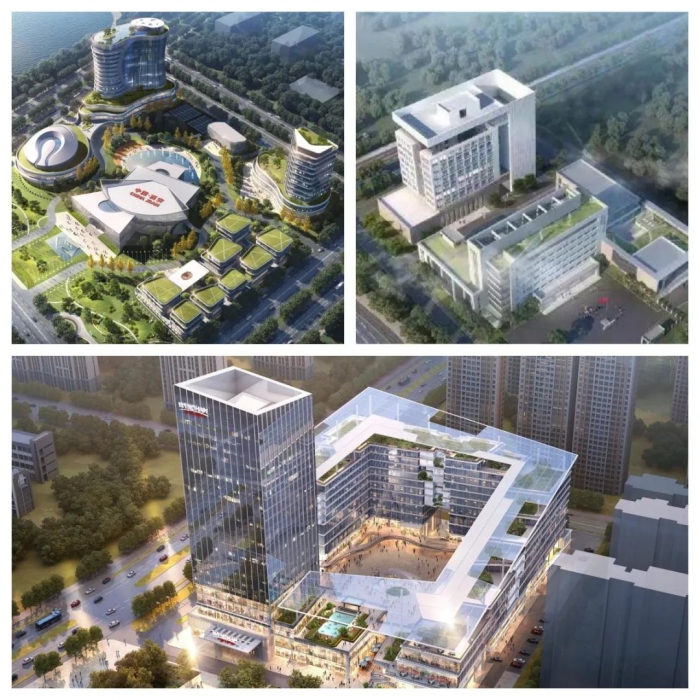項目鳥瞰圖:上左-國際健美健身聯(lián)合會IFBB-CBBA文化發(fā)展交流中心項目;上右-空港領航大廈項目二期;下-渭城商務功能區(qū)項目
