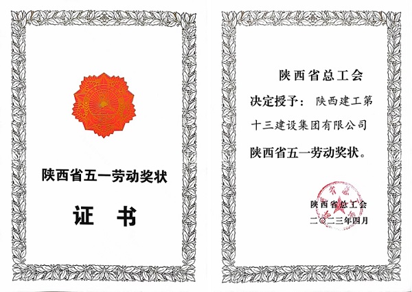 陜建十三建集團(tuán)榮獲“陜西省五一勞動獎狀”