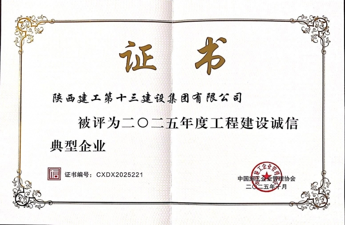 日前,從中國(guó)施工企業(yè)管理協(xié)會(huì)傳來喜訊,集團(tuán)獲評(píng)2025年度工程建設(shè)誠(chéng)信典型企業(yè)。